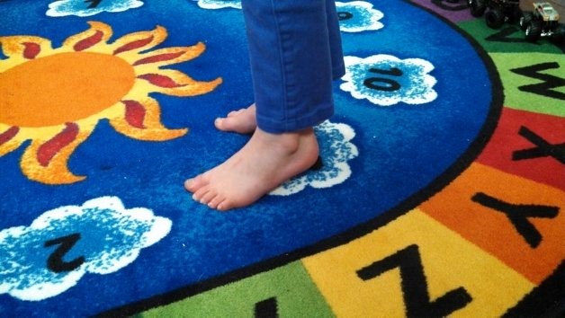 A sensory tunnel is made of stretchy material like Spandex or Lycra. I found some Spandex material at our local JoAnn Fabric. I have heard of others finding stretchy material on the clearance rack for as low as $1.oo per yard! {I was not so lucky, but was able to use a 40% off coupon}. I was told by a lady at a fabric store that polyester thread would be the most durable thread to use. I also found some elastic thread, but we did not end up using it. I do not have a sewing machine, so I went to my amazing mother’s house and she helped me make the tunnel. Here are the steps to making your own sensory tunnel: